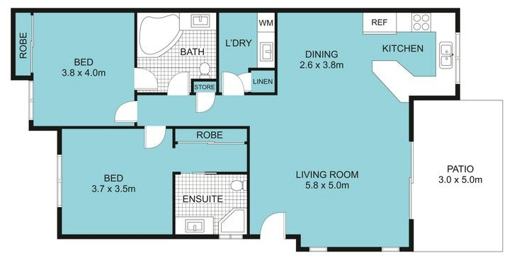 • Two oversized bedrooms, each with its own ensuite and split-system air conditioning